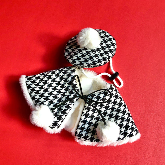 Houndstooth French Beret & reversible Faux Fur Cape Set