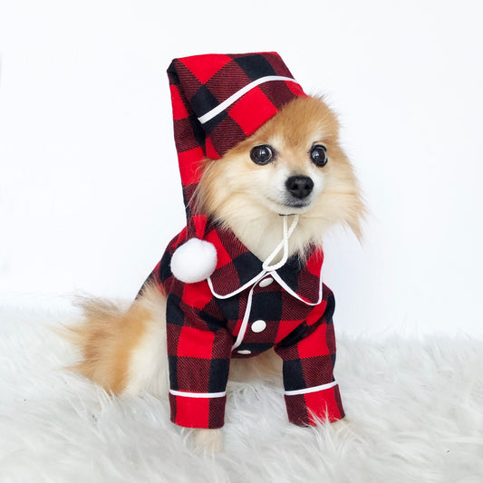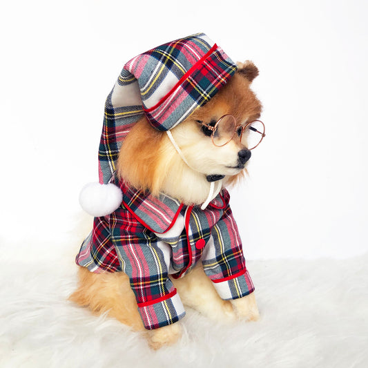 Shop our cozy pajama collection for your dogs. Find comfortable and stylish sleepwear for a restful night's sleep. Perfect matching night caps for holiday seasons.